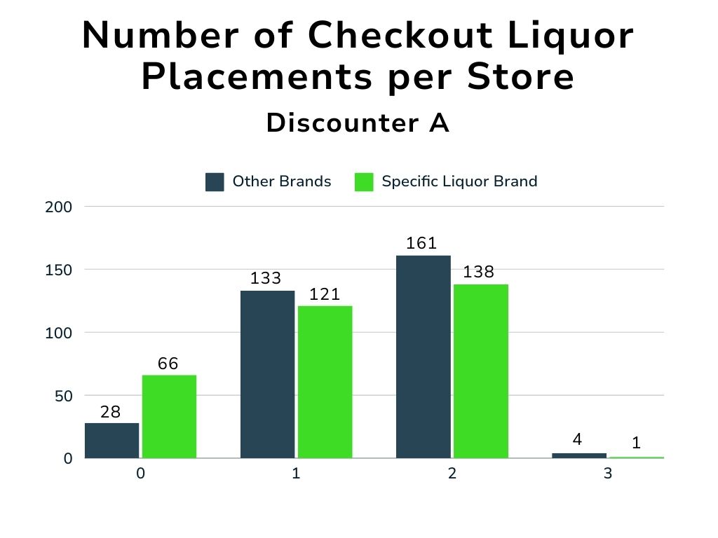 Due to a lack of distribution data on the frequency and quality of spirits placements in the checkout area, a leading spirits manufacturer chose to have a nationwide, statistically representative field survey carried out in the retail trade. A total of 1,400 shops were visited, divided between four food discounter chains with the largest market share.